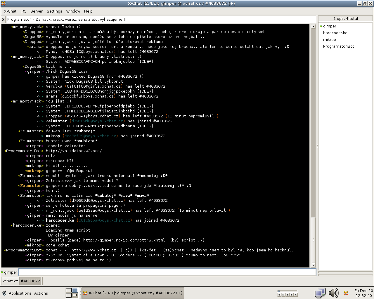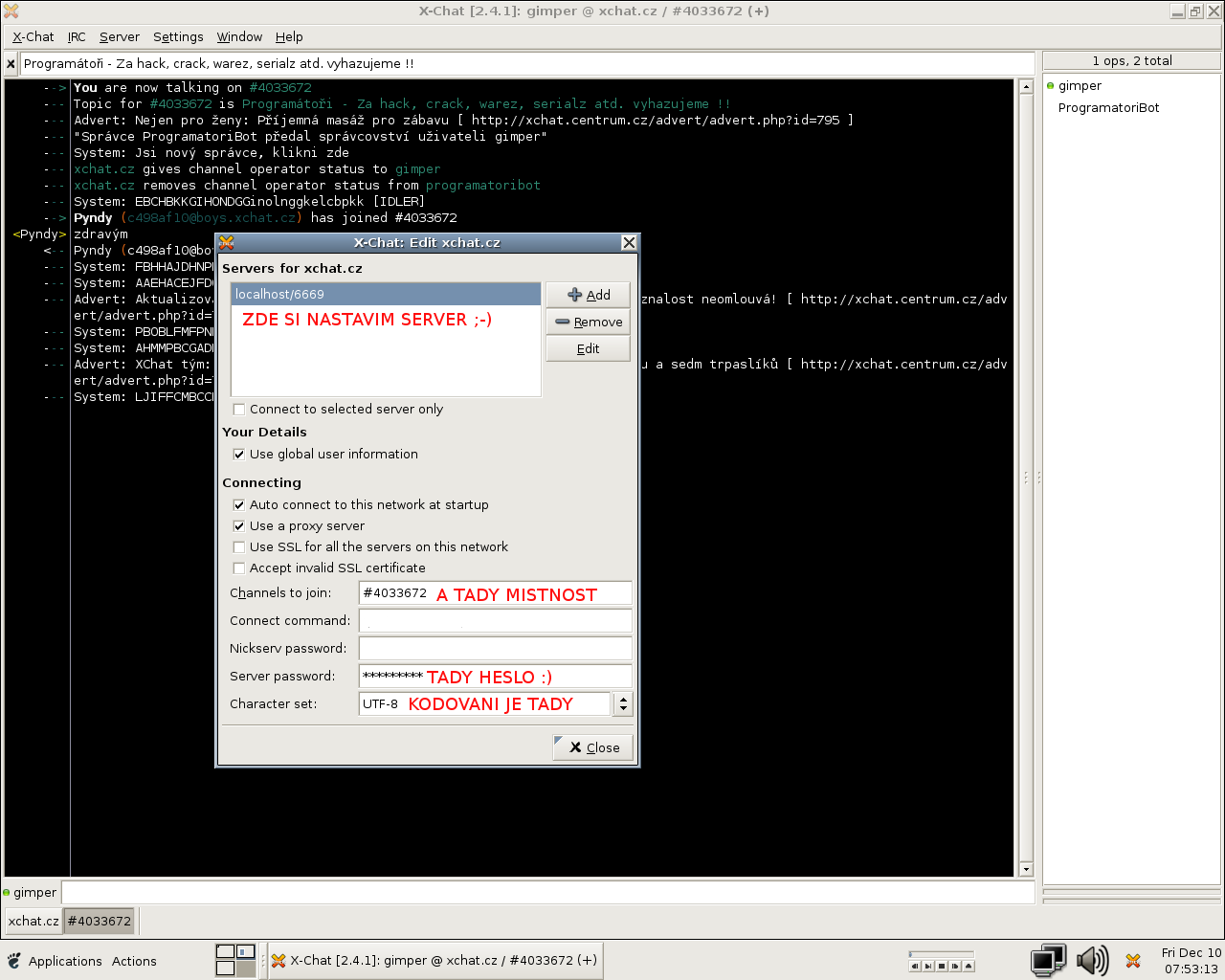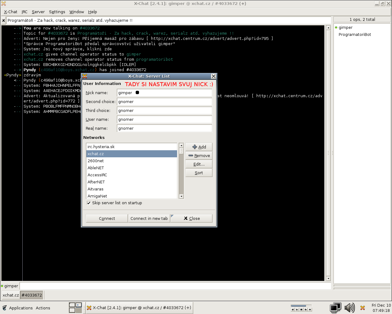 Zde vám popíšu několik nejdůležitějších funkcí programu X-Chat.